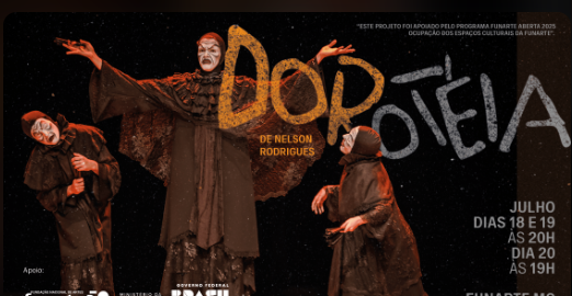 De 18 a 20 de julho, sexta e sábado, às 20h e domingo, às 19h, o Fócu - Grupo de Teatro leva sua montagem da obra "Dorotéia", de Nelson Rodrigues, aos palcos do Complexo Cultural Funarte MG.
