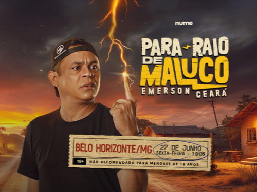 O humorista Emerson Ceará apresenta seu novo show solo “Para-Raio de Maluco”, que mergulha no caos das situações mais inusitadas que já viveu. De encontros esquisitos a histórias inacreditáveis, ele prova que tem um talento especial para atrair gente maluca – e transformar tudo em piada.
