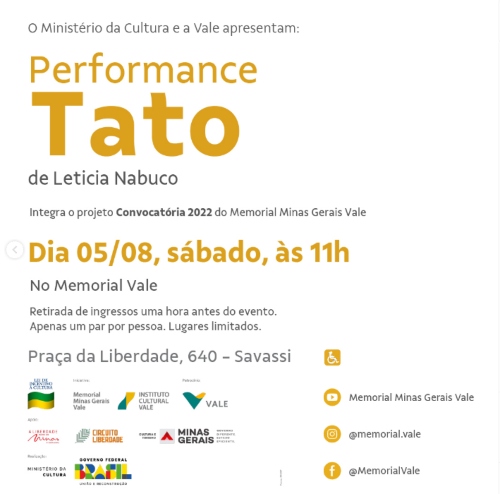 A artista vai ao Memorial para performar o trabalho “Tato”.