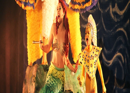 As crianças na plateia são convidadas a dançar e cantar com o caranguejo Sebastião, com o peixe Linguado e se assustam com Úrsula, a vilã polvo.
