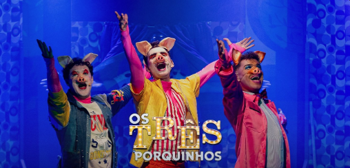 Os três porquinhos estão prontos para encantar o público nos palcos, e desta vez, a clássica história deles é a grande chance de salvar o teatro!