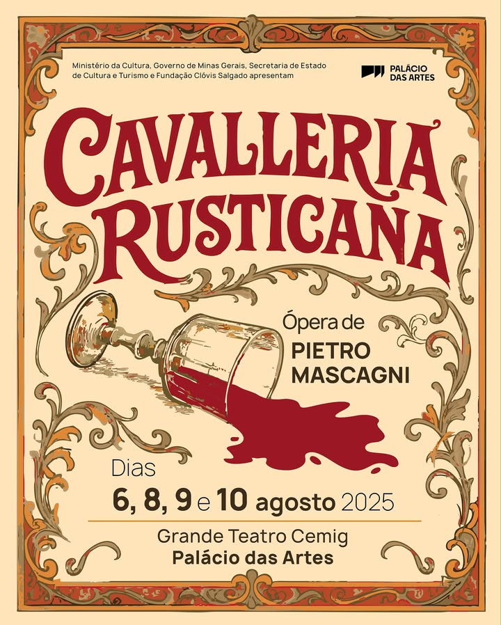 Uma produção que combina drama e música em uma história intensa de amor, traição e vingança na Sicília. A ópera em um ato “Cavalleria Rusticana”, composta por Pietro Mascagni, retorna ao Palácio das Artes. O libreto é de Giovanni Targioni-Tozzetti e Guido Menasci. A direção musical e a regência ficam a cargo de Ligia Amadio, maestra titular da Orquestra Sinfônica de Minas Gerais (OSMG), e quem assina a concepção e direção cênica é Menelick de Carvalho.