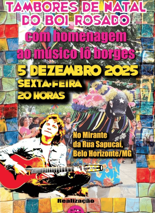 Nesta sexta, 5 de dezembro, a Irmandade Boi Rosado realiza mais uma edição do Tambores de Natal, no Mirante da Rua Sapucaí. Mesmo com o Boi encantado, a tradição segue firme: cortejo, música e ocupação afetiva da cidade.