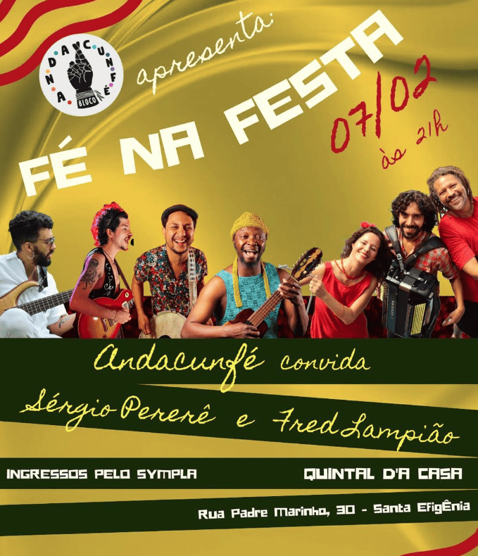 O Bloco Andacunfé retorna às ruas no sábado, 15 de fevereiro, celebrando mais um ano no bairro Santa Tereza, que o acolhe desde o início de sua trajetória. Com respeito, alegria e muita música, o bloco reforça a importância do cuidado com o bairro e com a comunidade.