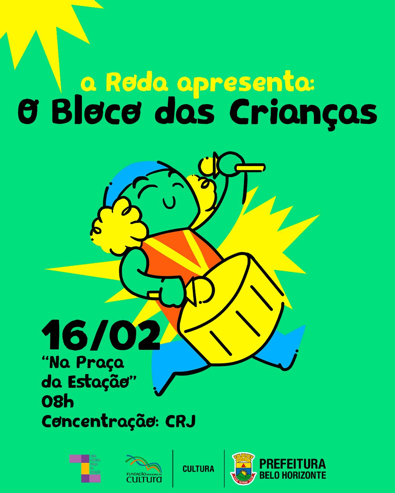 No dia 16 de fevereiro, domingo, vai acontecer o Bloco das Crianças que promete encantar os pequenos batuqueiros dando um verdadeiro show de alegria e fofura. A concentração será no CRJ, a partir das 8h. É uma ótima opção para vestir o seu mini folião e a festa cheia de música e diversão na Praça da Estação.