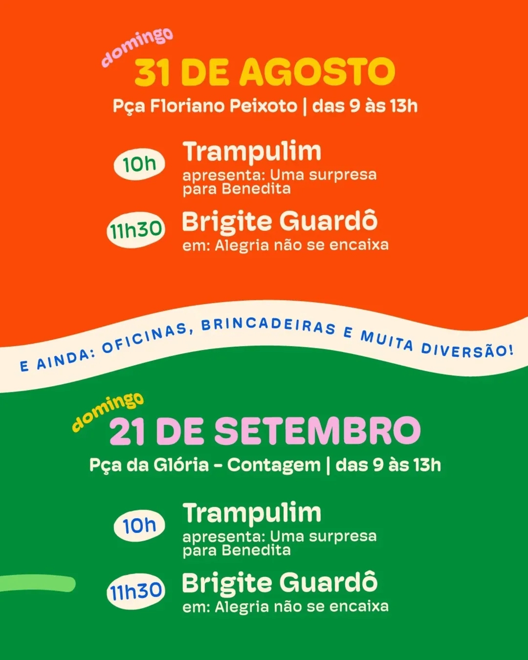 As próximas edições do evento já tem data marcada e acontecem no dia 31/08 (domingo), de 9h às 13h, na Praça Floriano Peixoto, em BH, e no dia 21/09 (domingo), no mesmo horário, na Praça da Glória, em Contagem.