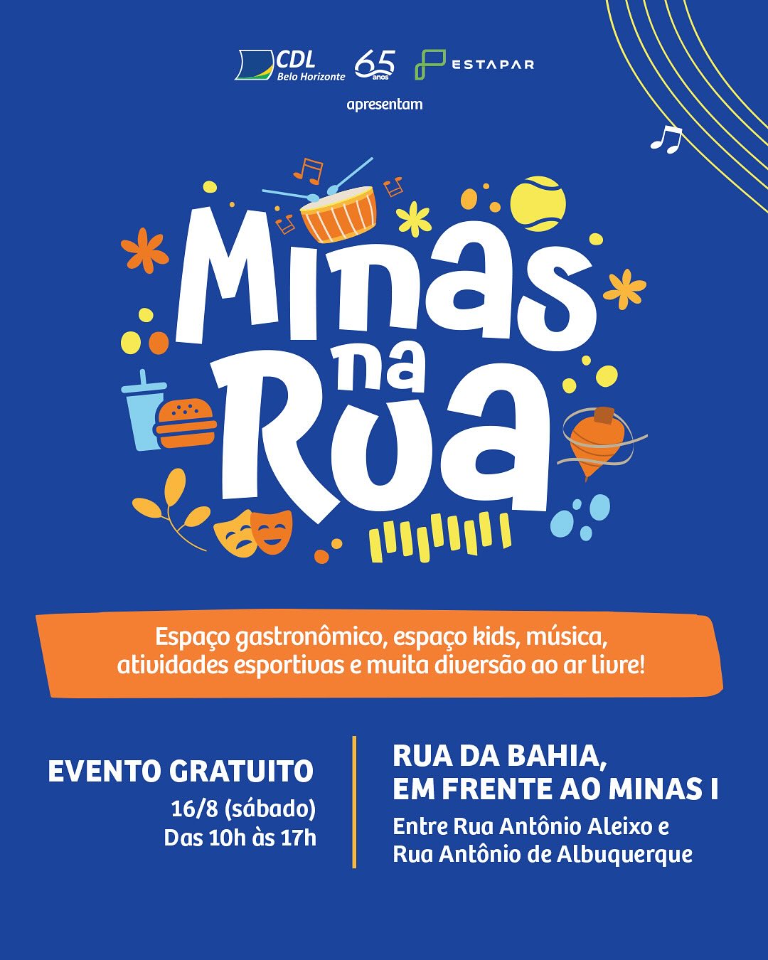 O Minas na Rua está chegando para te surpreender! No sábado, 16/8, das 10h às 17h, a rua da Bahia será tomada pela alegria de mais um evento em celebração dos 90 anos de histórias do Minas Tênis Clube.