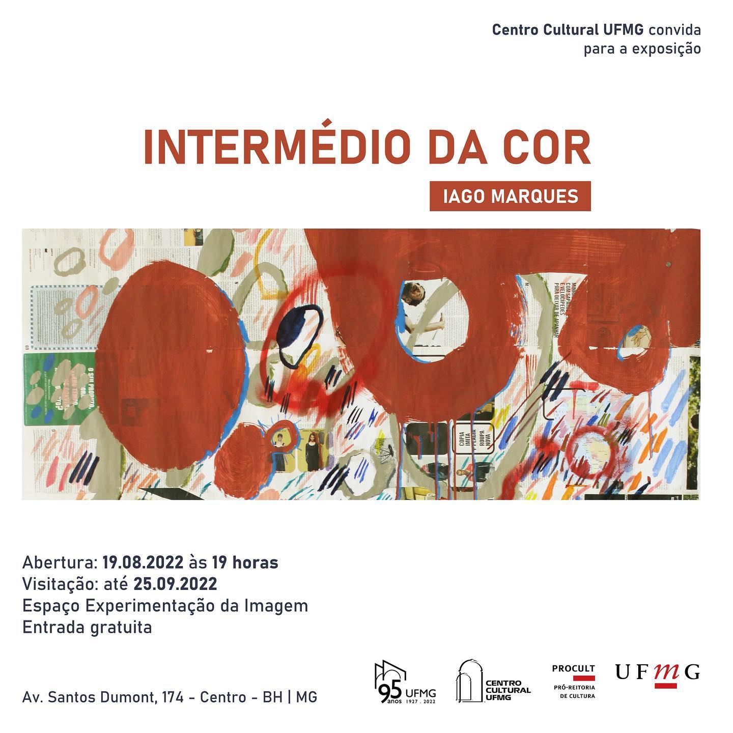 O Centro Cultural UFMG convida para a abertura da exposição ‘Intermédio da cor’, do artista Iago Marques, na sexta-feira, dia 19 de agosto de 2022, às 19 horas.