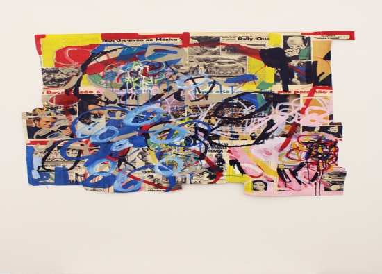Alguns textos, manchetes e fotografias são identificáveis; já em outros suportes as intervenções são mais intensas, gerando uma interessante mistura de letras, fotos, traços, cores e formas que se fundem, se complementam e se embatem, simultaneamente.