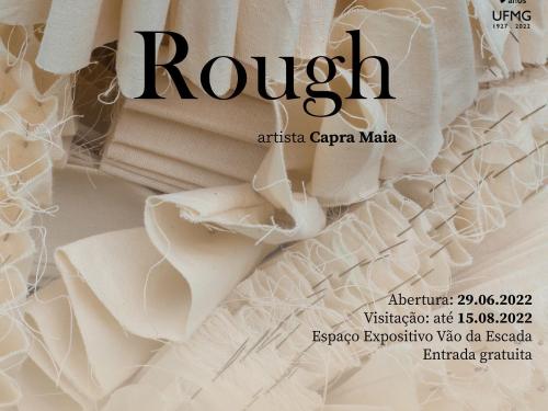 Rough é um objeto têxtil linear que pode ser estendido, enrolado, sobreposto ou acumulado, se adaptando aos mais diversos suportes expositivos. A peça foi construída a partir de módulos de tecido que podem ser repetidos indefinidamente, tendendo potencialmente ao infinito. O padrão desses módulos teve como princípio processos de montagem de uma peça histórica de indumentária: a gola rufo, gola circular de tecido armado, dobrado e alternadamente costurado, uma peça amplamente difundida entre meados dos séculos XVI e XVII, sobretudo na Europa Ocidental. Rough copia a estrutura do rufo, mas não seu acabamento. Feito em algodão cru, é preso por alfinetes, sem costuras e, ao invés de fechar um círculo, permanece aberto, permitindo sua adaptação ao espaço.