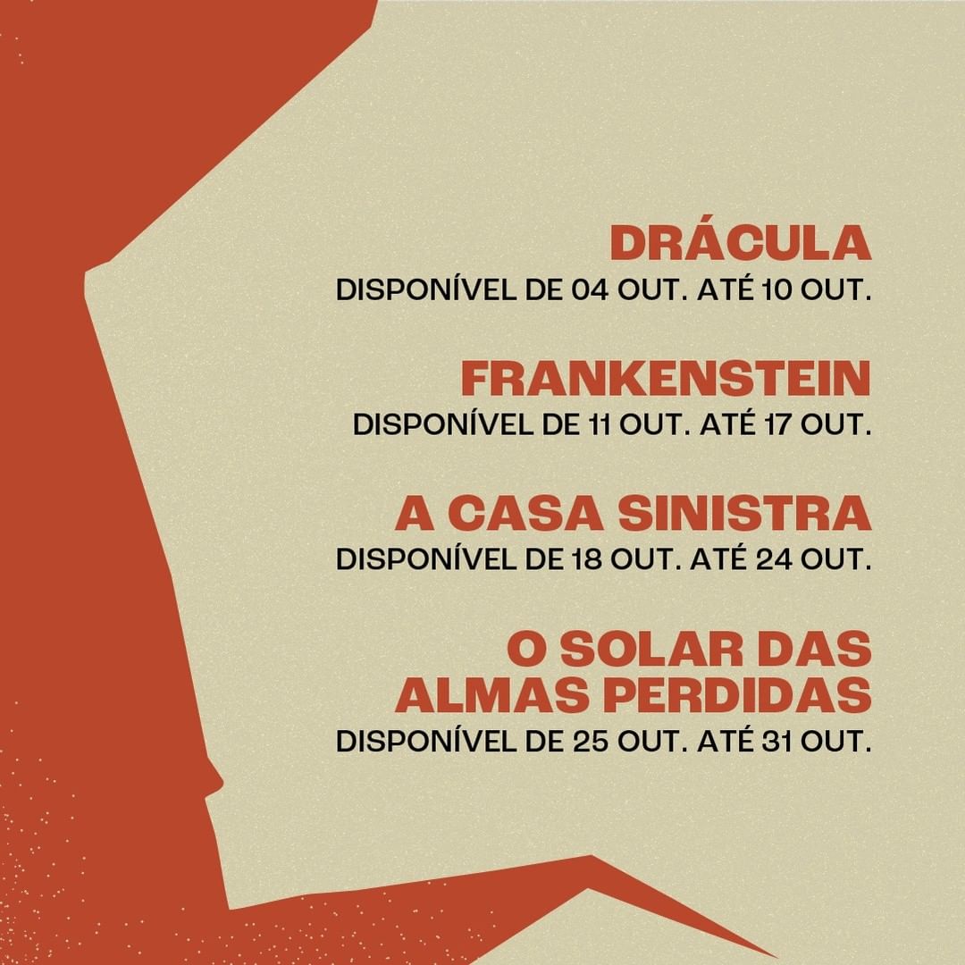 Todas as segundas-feiras um novo filme será disponibilizado, gratuitamente, e ficará disponível por uma semana. São quatro filmes influenciados pelo estilo gótico; obras clássicas que fazem do terror mais que um gênero, e sim, uma tradição para a sétima arte.