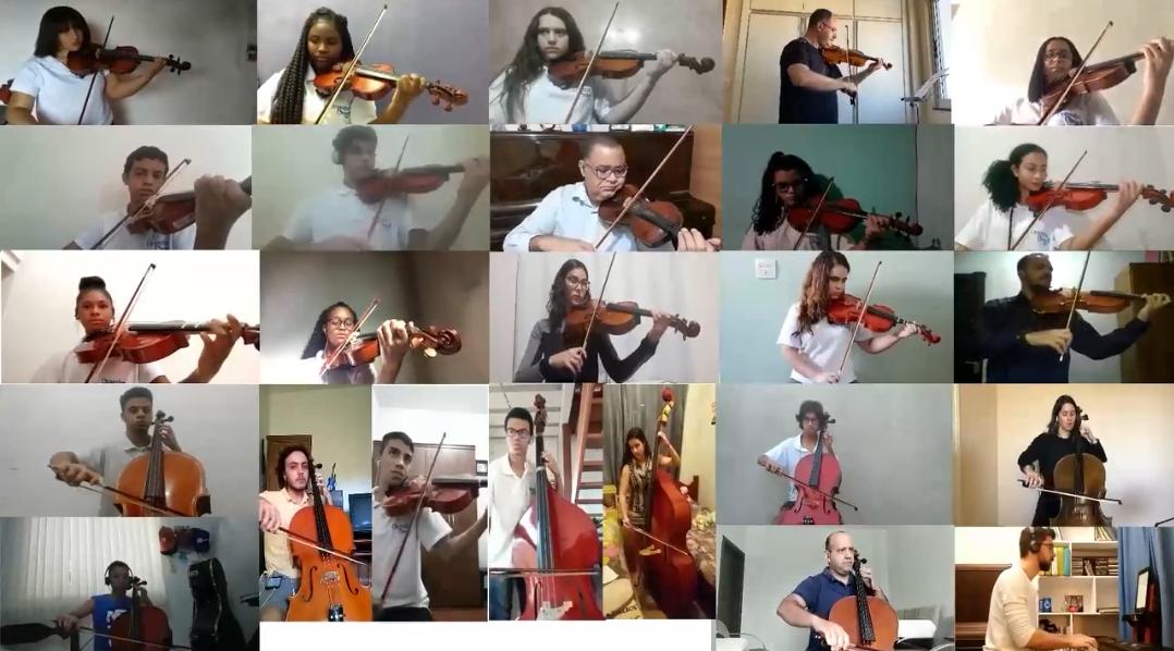 O maestro Eliseu Barros, que está à frente da Orquestra desde o início, em 2012, diz que tem sido um desafio diário, e que o retorno está compensando. “No início, estávamos todos, instrutores e alunos, nos adaptando a uma nova realidade. Vários alunos não possuem computador, tablet ou celular e acabam tendo que usar o telefone dos pais, o que às vezes os impossibilita acompanhar as aulas ao vivo. Foi preciso dividi-los em grupos para não deixar ninguém sem aulas. E o comprometimento dos alunos tem sido muito grande: média de frequência de cerca de 90%”, comemora. Para ele, as aulas online também estão sendo uma importante forma de interação social. “As aulas têm servido não só para que eles continuem praticando, mas para que tenham o contato social, tão importante neste momento que vivemos. Além de ser uma ocupação diária, ajuda a enfrentar a insegurança e as incertezas causadas pela pandemia”, conclui.