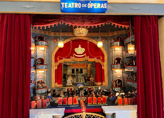 A miniatura de um típico teatro lírico, representa cenários de óperas famosas, como Tosca (Puccini); Aida, Rigoletto e La Traviata (Verdi); além de Carmen (Bizet), entre outras.