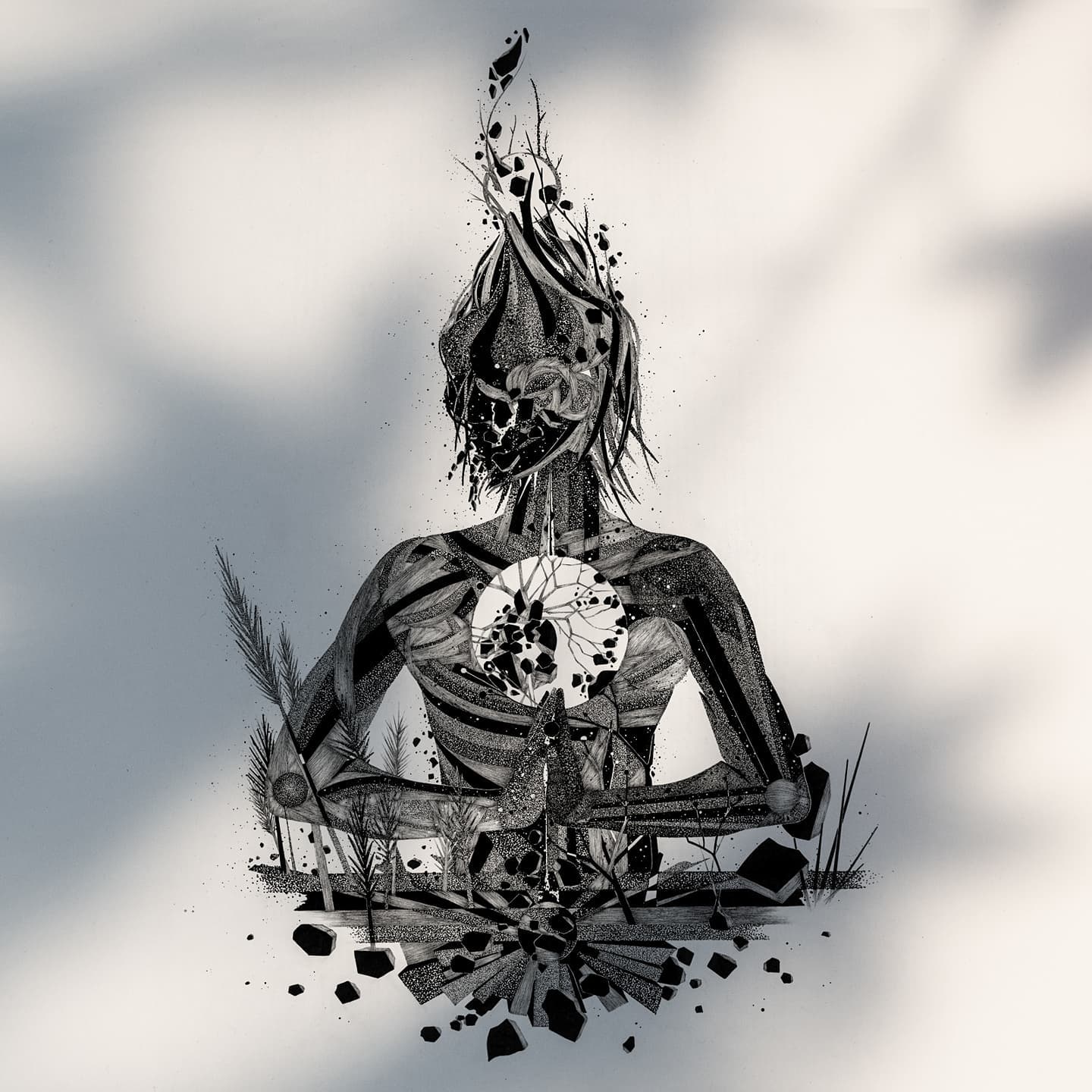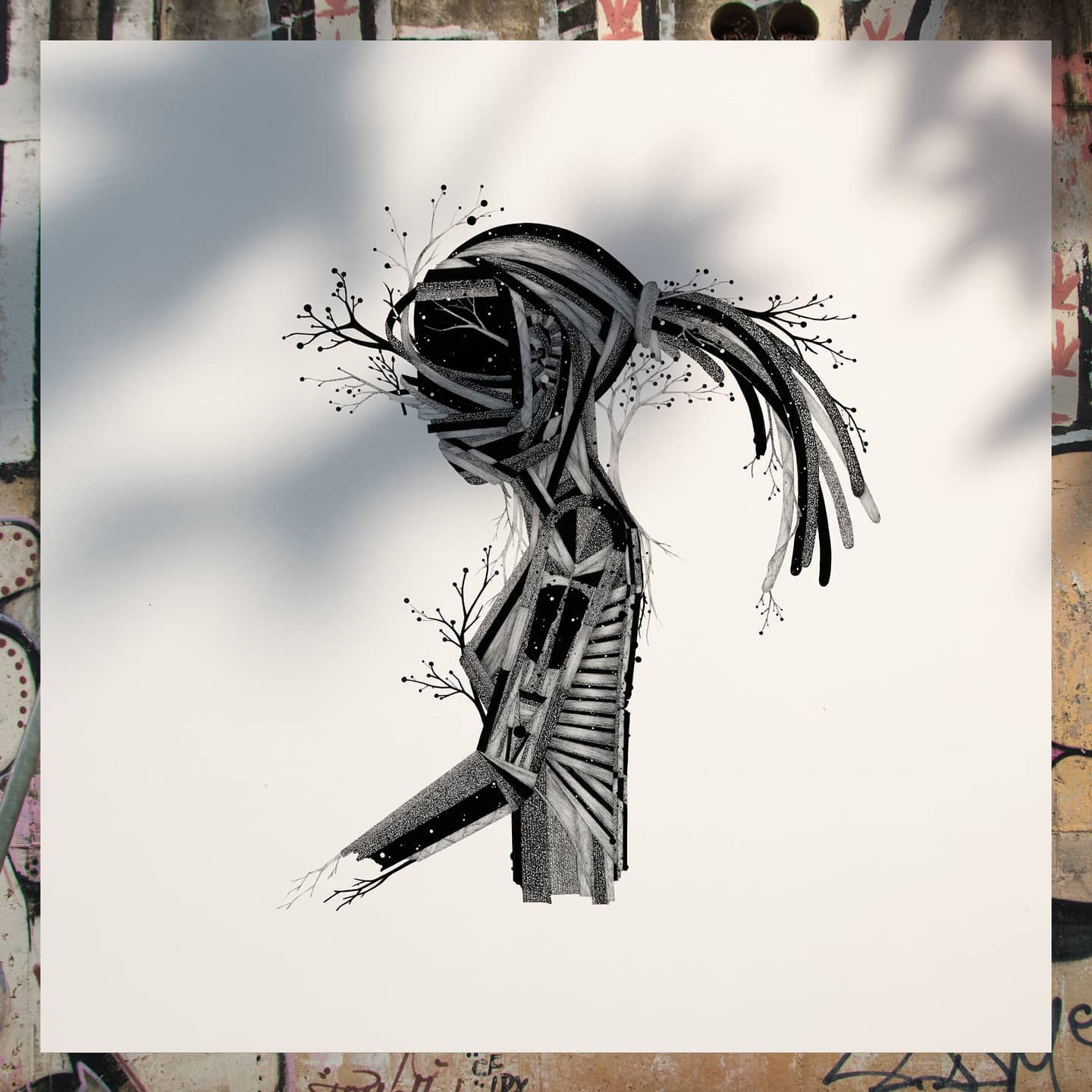 Autodidata e independente, Mau realiza há 14 anos, pesquisa artística que começou com a criação de um universo de desenhos no papel com tinta nanquim.