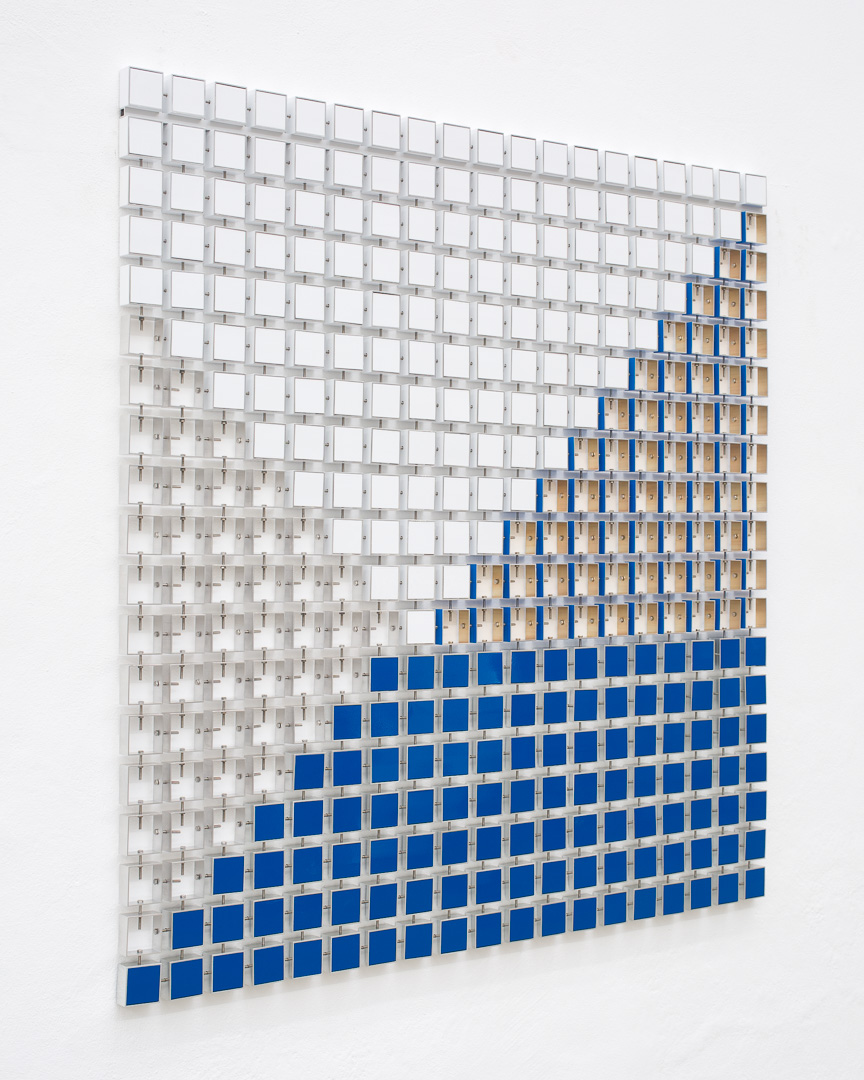 O artista explica que “Quacors” - um neologismo criado por ele, que une as palavras quadrado e cor. Trata-se de híbridos de esculturas e pinturas que surgem como espécies de blocos nos quais uma sucessão de módulos quadrados - ora vazados, ora preenchidos – são articulados por parafusos dotados de certa folga, de tal forma que as composições sejam, a um só tempo, tesas e fluidas. Já Prismas são trabalhos mais arquiteturais que também partem dos módulos de alumínio.