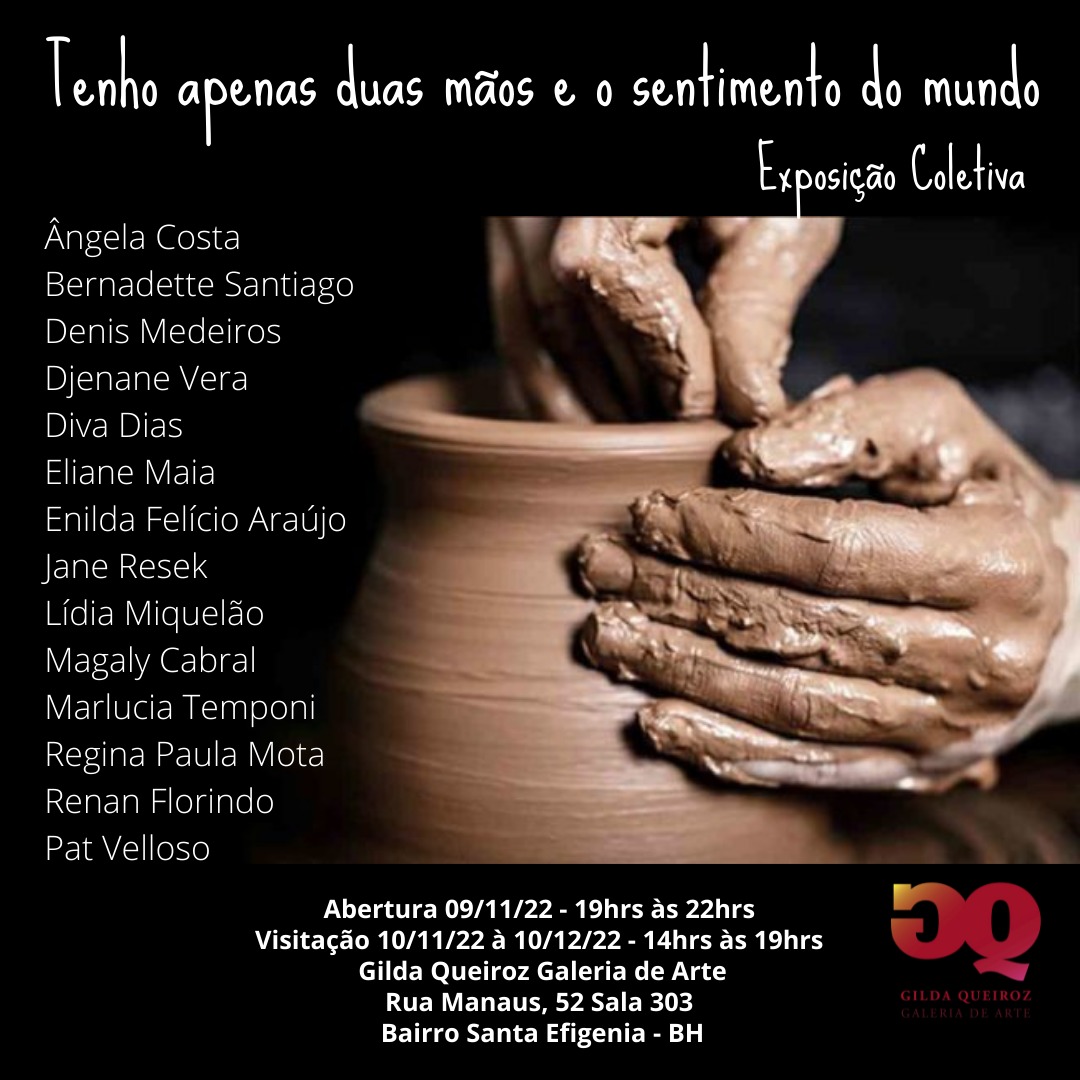 Exposição coletiva que será inaugurada na Gilda Queiroz Galeria de Arte no dia 09/11/22, à partir das 19:00 horas, na Rua Manaus, 52 – sala 303, Santa Efigênia - BH.