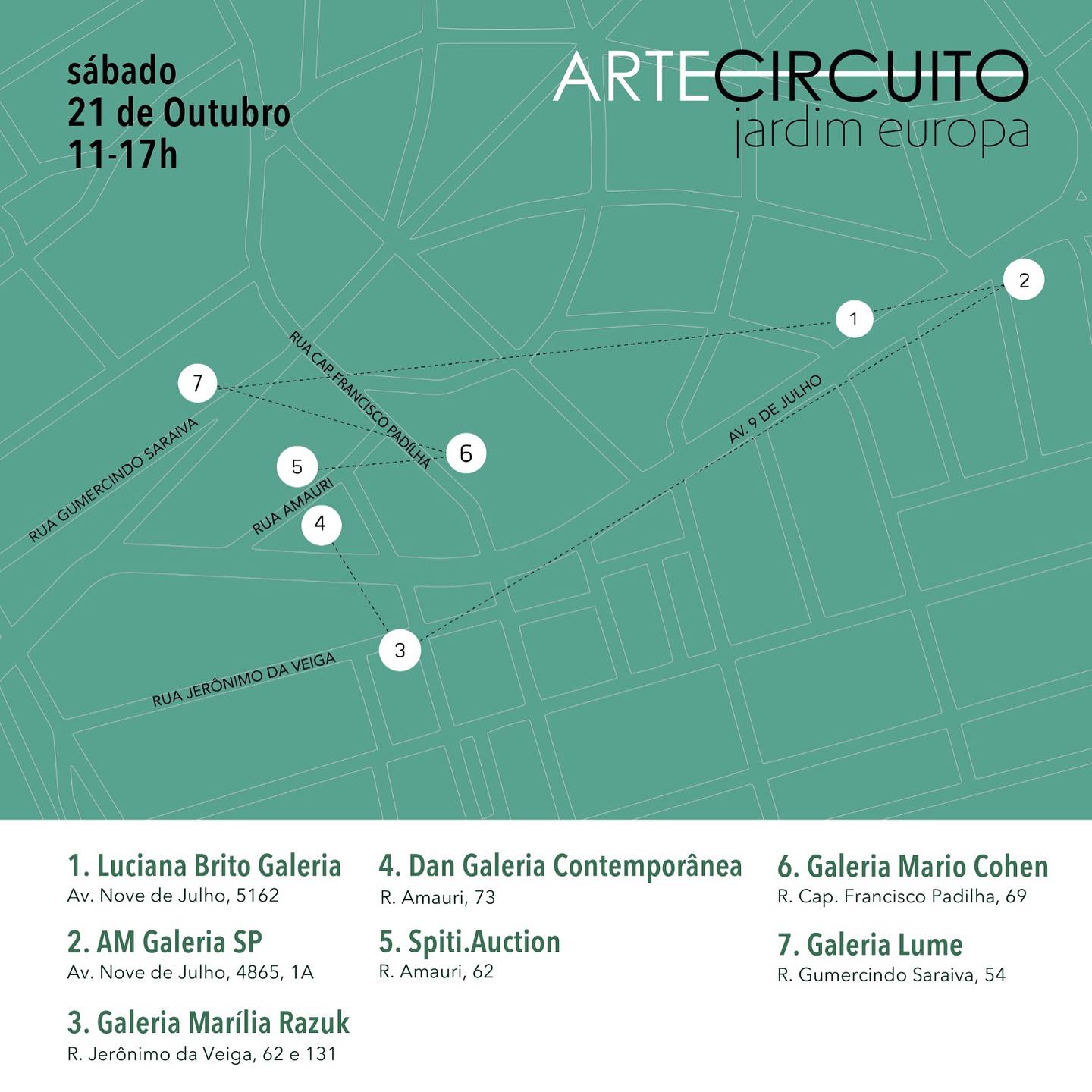 As galerias da região do Jardim Europa realizam a 6a edição do Arte Circuito Jardim Europa, o evento acontece no dia 21.10 e tem o objetivo de incentivar a visitação e o acesso aos seus espaços.