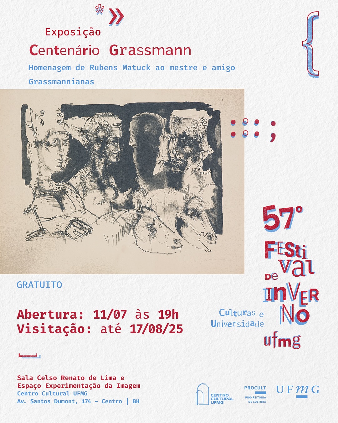 O Centro Cultural UFMG convida para a abertura das exposições ‘Centenário Grassmann’, ‘Homenagem de Rubens Matuck ao mestre e amigo’ e ‘Grassmannianas’.