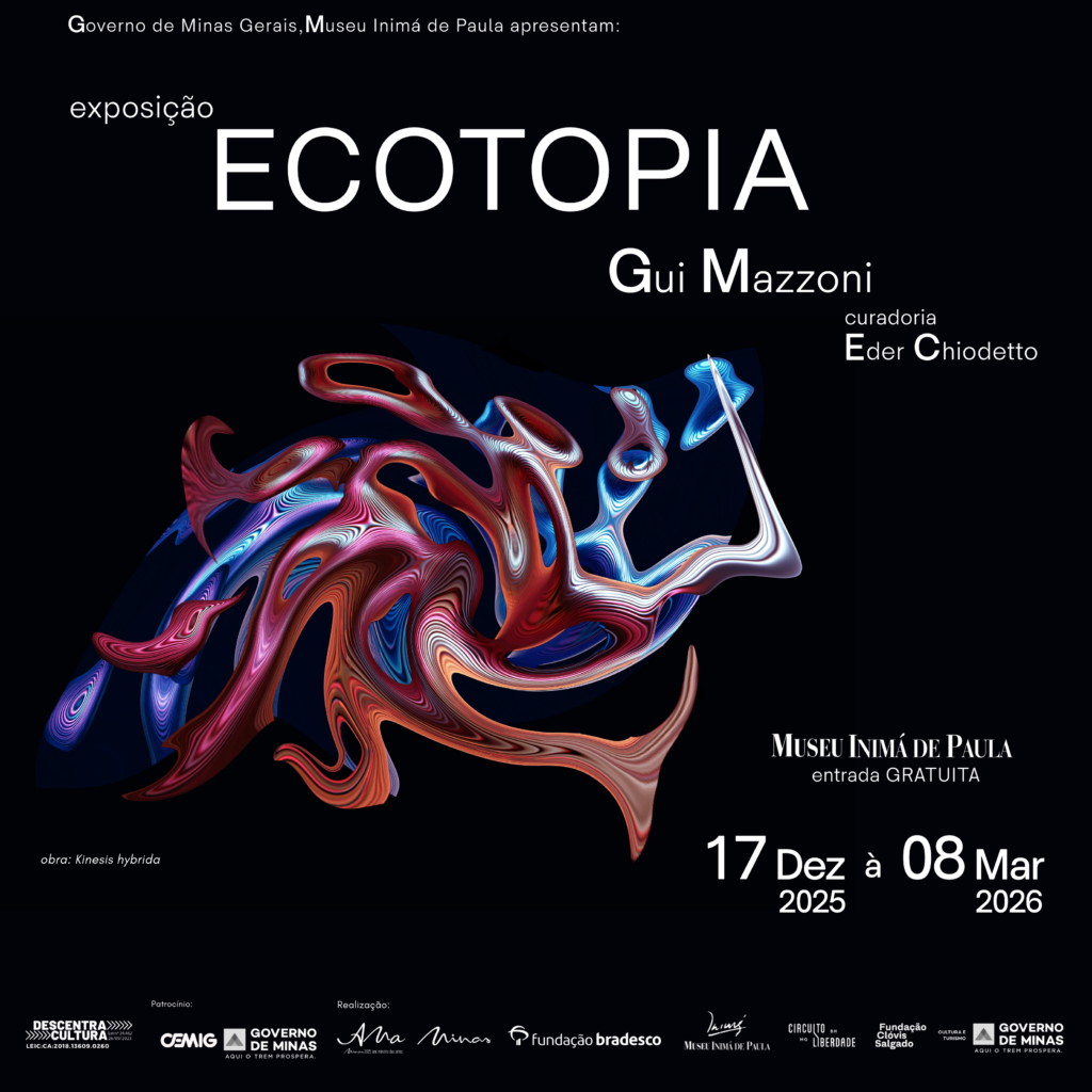 O Museu Inimá de Paula, em Belo Horizonte, apresenta ECOTOPIA, exposição individual do médico e artista visual Gui Mazzoni, em cartaz até 8 de março de 2026, com entrada gratuita. Com curadoria de Eder Chiodetto, a mostra reúne 34 obras produzidas a partir de uma técnica criada pelo próprio artista: a sonofotografia.
