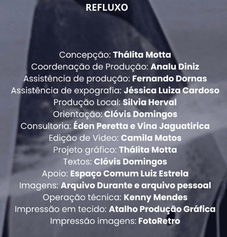 Inspirado na ideia de “obsessão positiva”, conceito da escritora americana Octavia Butler, Refluxo é resultado de mais de uma década de pesquisa da artista Thálita Motta. A exposição reúne documentos e registros de performances anteriores, agora revisitados como novos corpos performáticos. A partir dessas memórias e materialidades, a artista cria novas especulações e fabulações, deslocando suportes e construindo outras paisagens poéticas e críticas.