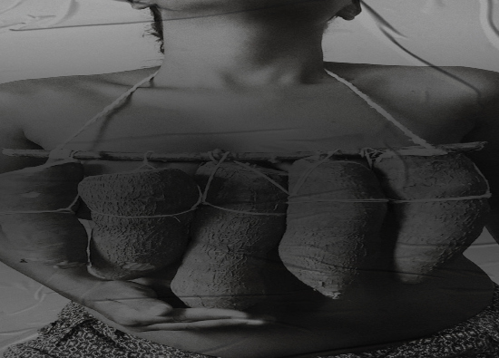 Como elemento recorrente, a mandioca, alimento sagrado e importante para a cultura dos povos originários, é revelada em sua força vital e ainda faz alusão a necessidade latente do respeito a natureza e da reconexão com a terra.