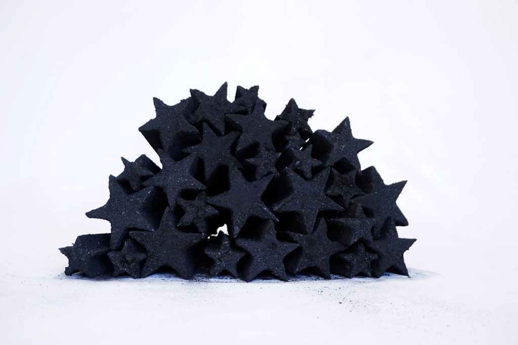 A mostra também apresenta a escultura ‘Antropoceno (BBBP)’ (2025), feita com materiais como papel de Bíblia, bosta de boi, chumbo e petróleo, além de obras como ‘Futuro’ (2024), uma gravura criada a partir da escrita invertida e espelhada da palavra ‘futuro’ por crianças não alfabetizadas, e a instalação ‘Mesh (superfície e imagem)’ (2025), que explora a relação entre o real e o virtual por meio de reflexos e luz, em alusão às dinâmicas de acumulação, exploração e expropriação realizadas na internet.