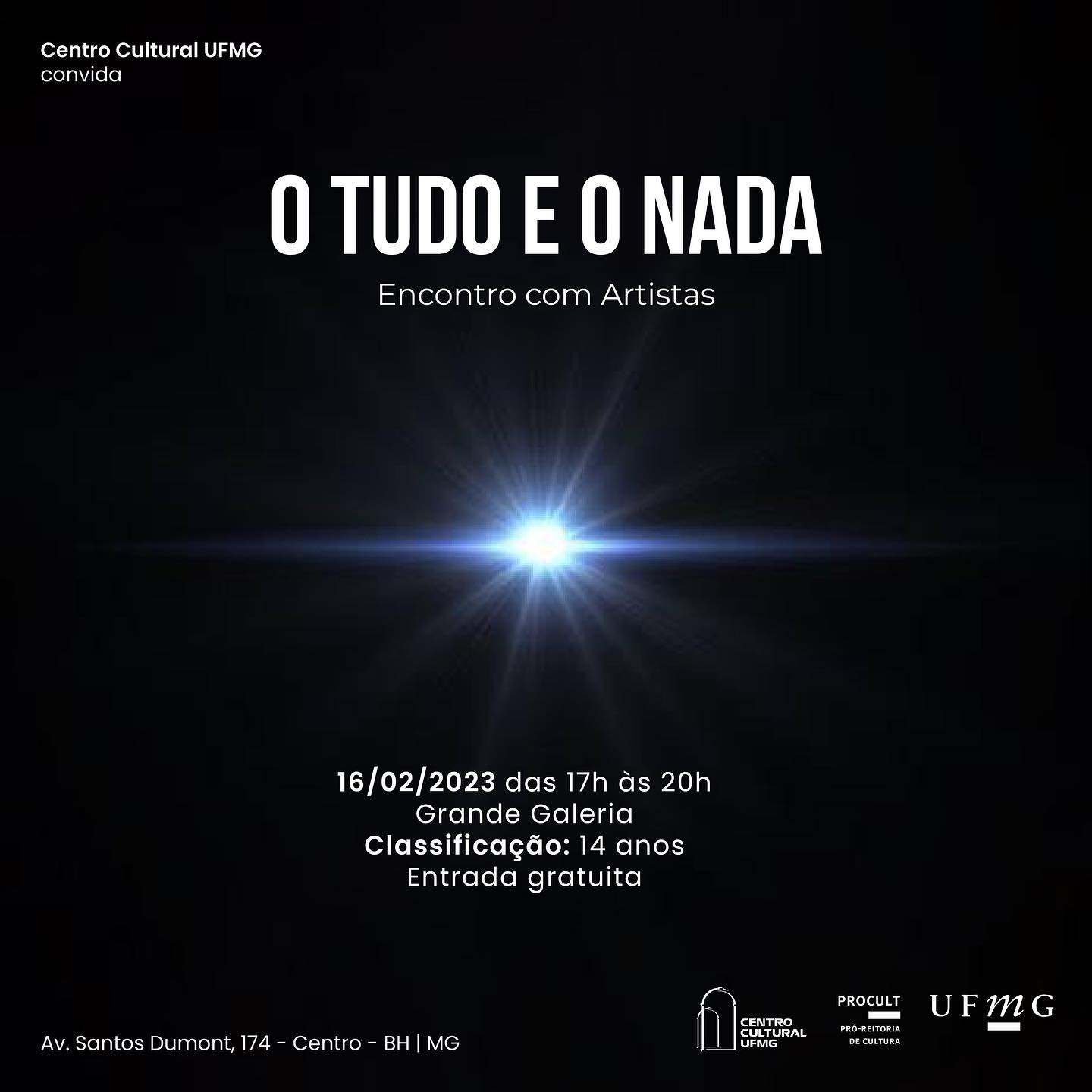 O Centro Cultural UFMG convida para o ‘Encontro com Artistas’ da exposição coletiva ‘O Tudo e o Nada’, na quinta-feira, dia 16 de fevereiro de 2023, das 17h às 20h.