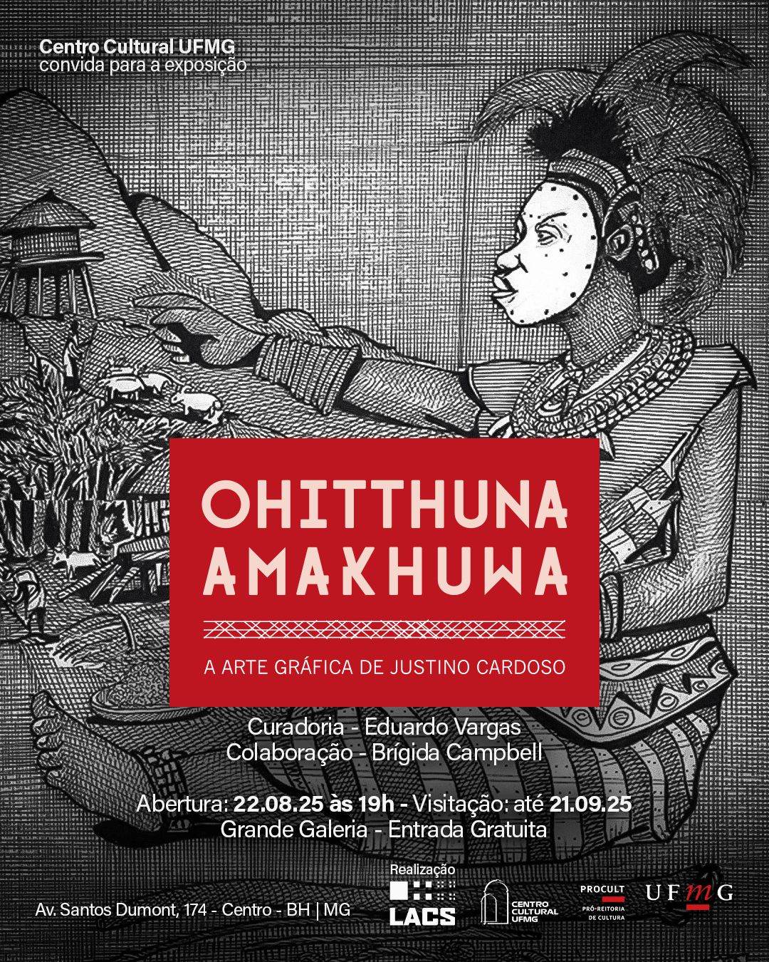 O Centro Cultural UFMG convida para a abertura da exposição ‘Ohitthuna Amakhuwa – A Arte Gráfica de Justino Cardoso’, com curadoria de Eduardo Vargas e colaboração de Brígida Campbell.