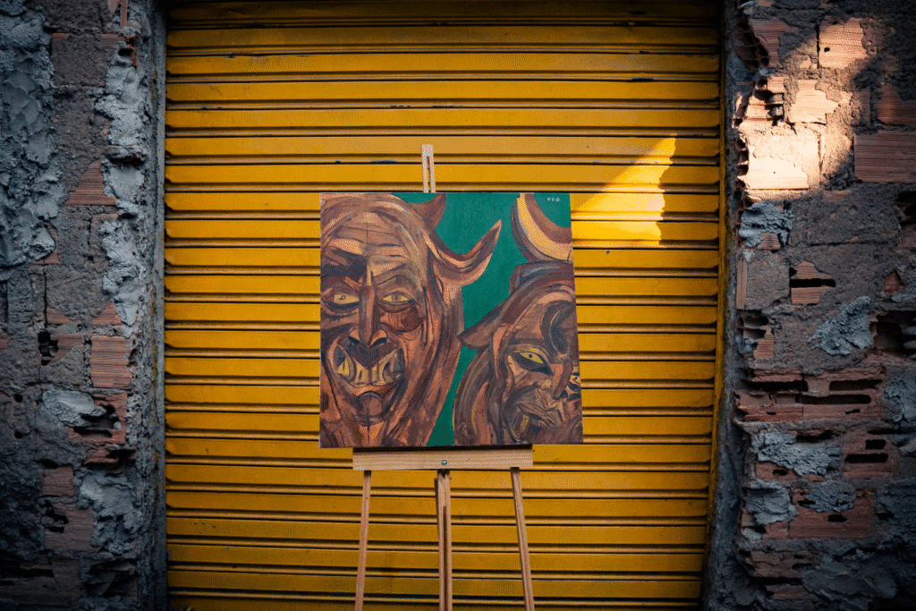 Com pinceladas intensas e cores rituais, o artista transforma essas figuras tradicionais em portais visuais entre passado e futuro. Das raízes no Aglomerado da Serra aos laços com o Norte de Minas, sua obra constrói pontes entre território, identidade e resistência cultural.