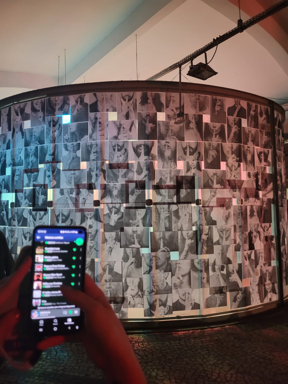 A fachada de vidro do espaço também sofre intervenção de um conjunto de imagens compiladas editadas pelo artista .