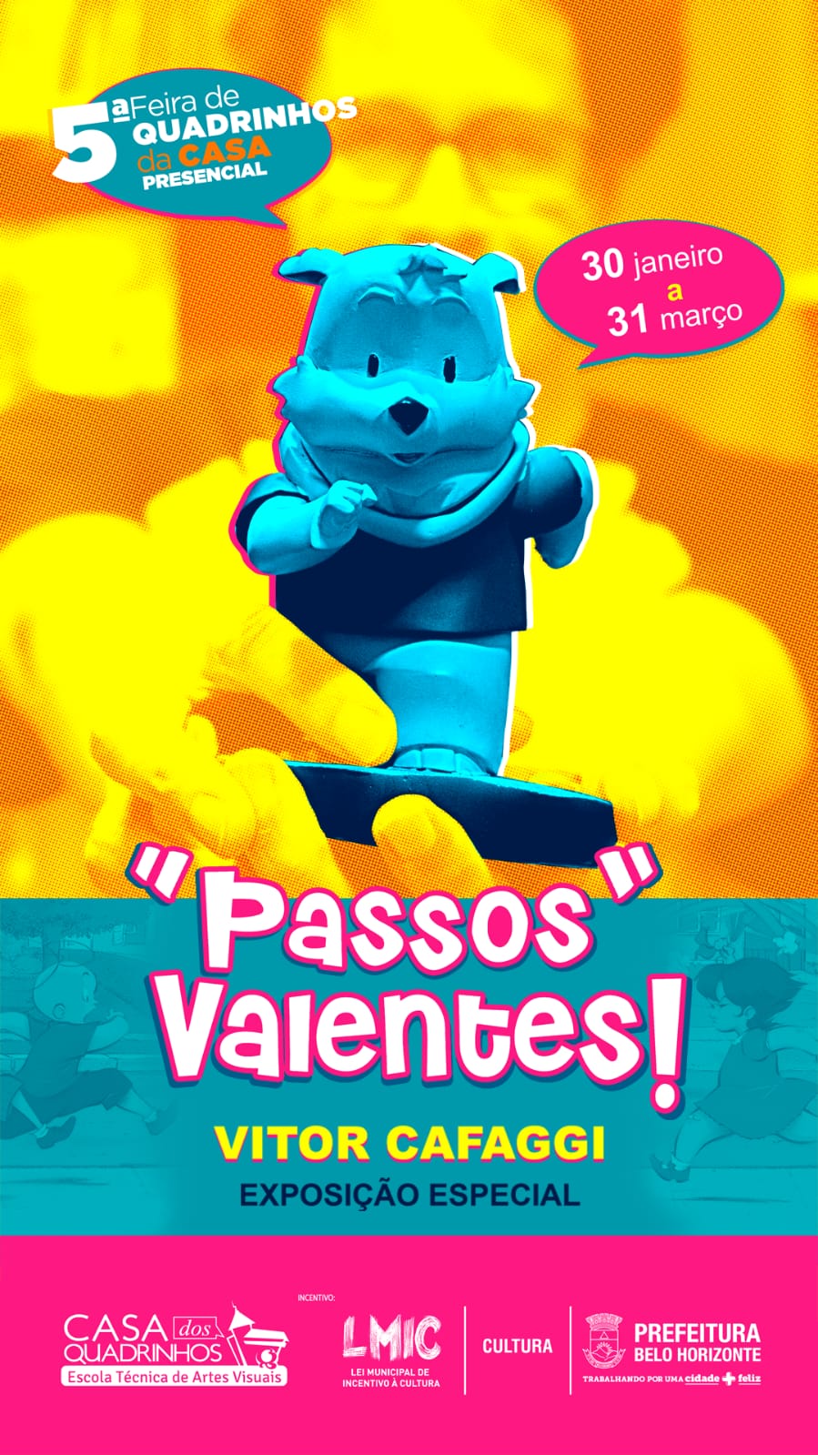Para os fãs do artista premiado e de HQs, “Passos Valentes!” será uma oportunidade de revisitar sua carreira e conhecer um acervo composto ainda de vídeos com entrevistas, esculturas dos principais personagens, feitas pelo artista plástico Eddie Vieira, objetos e referências que o inspiram.
