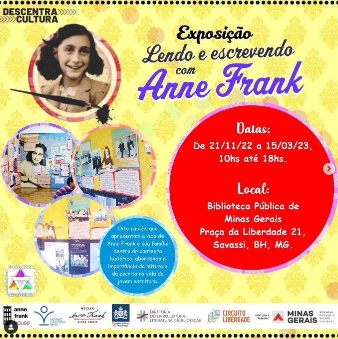 Celebrando os 75 anos da publicação do livro “O Diário de Anne Frank”, a Biblioteca Pública Estadual de Minas Gerais recebe a exposição “Lendo e Aprendendo com Anne Frank”, que traça um paralelo entre as memórias da jovem alemã de origem judaica que vivenciou o nazismo durante a Segunda Guerra Mundial e interpretações contemporâneas de jovens estudantes sobre a defesa dos Direitos Humanos.