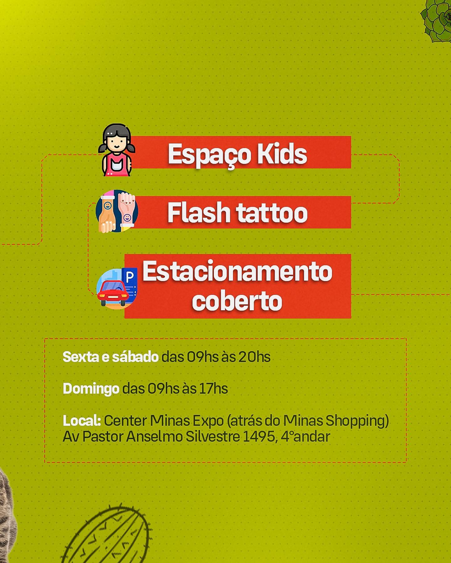 O espaço conta com estacionamento coberto do Shopping e o evento tem espaço kids, música ao vivo, praça de alimentação, flash tattoo e muito mais.