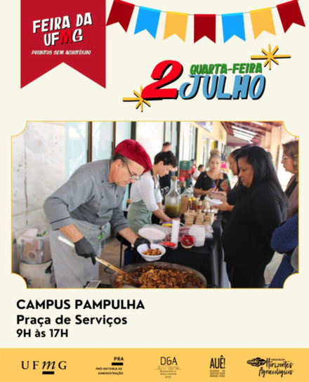 Bote seu melhor enfeite de São João que quarta tem feira na Praça de Serviços da UFMG, campus Pampulha! Daquele jeito que você ja conhece: produtos locais e agroecológicos, comida boa e de verdade, artesanato e cosméticos naturais!
