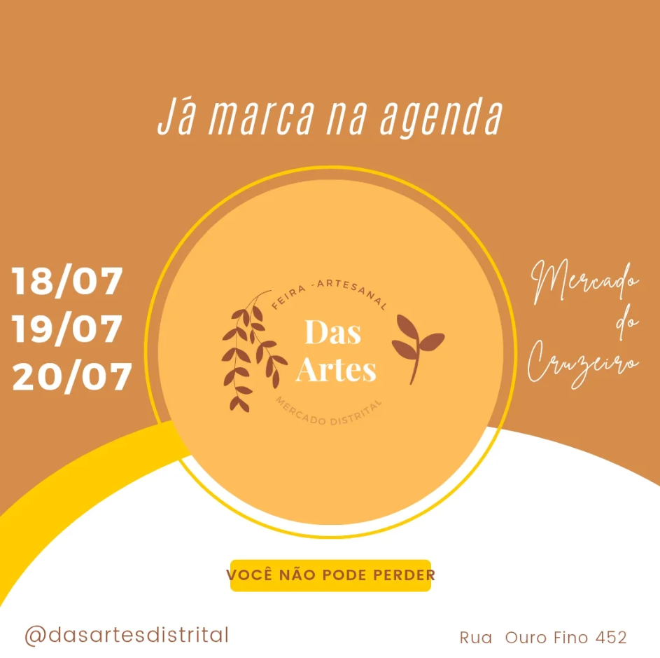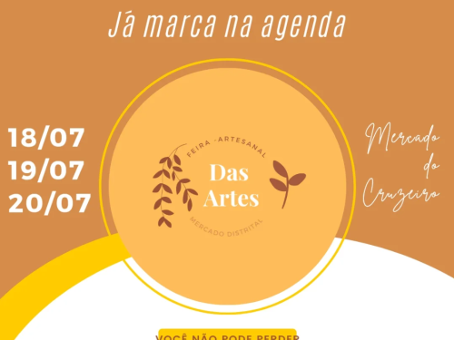 Nos dias 18, 19 e 20 de julho acontece no Mercado Distrital do Cruzeiro a Feira Das Artes! Sexta e Sábado de 9:00 às 17:00 e no