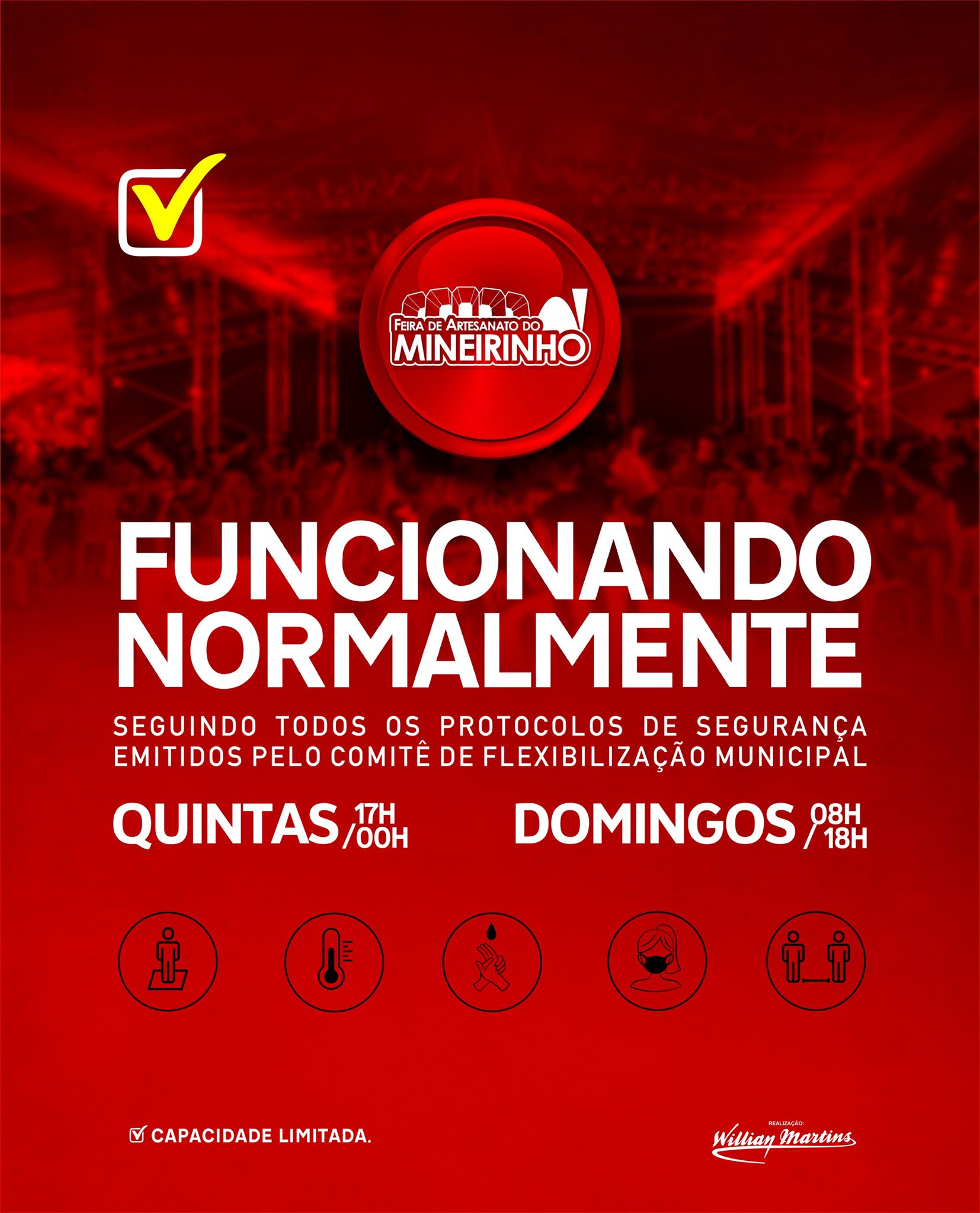 Em conformidade com o protocolo sanitário estabelecido pela Secretaria Municipal de Saúde, a Feira de Artesanato do Mineirinho prossegue suas atividades no mês de dezembro.