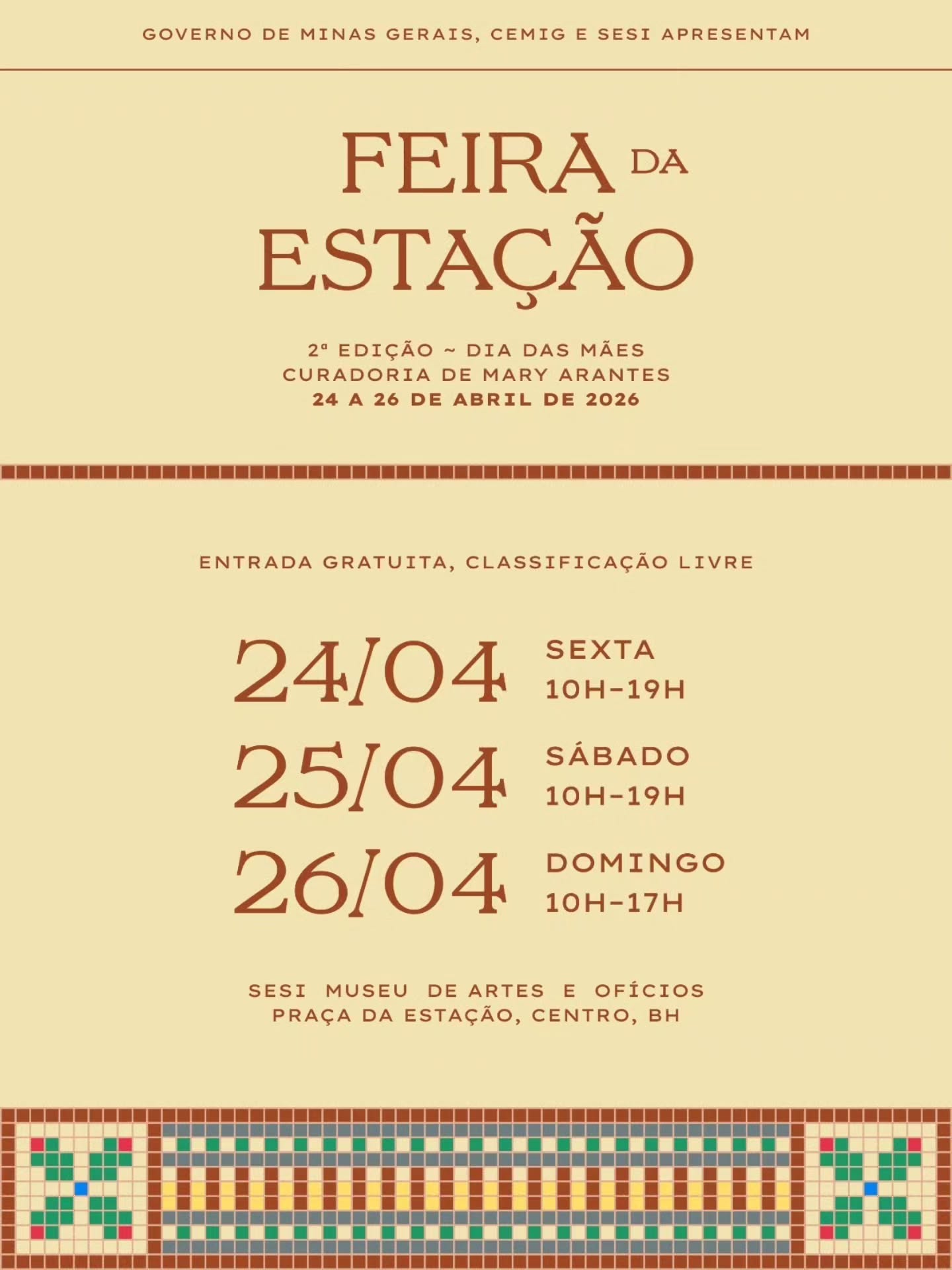 Em parceria e com curadoria de Mary Arantes, a Feira da Estação em sua segunda edição, especial Dia das Mães, ocupará os espaços do prédio principal do SESI Museu de Artes e Ofícios, na Praça da Estação.