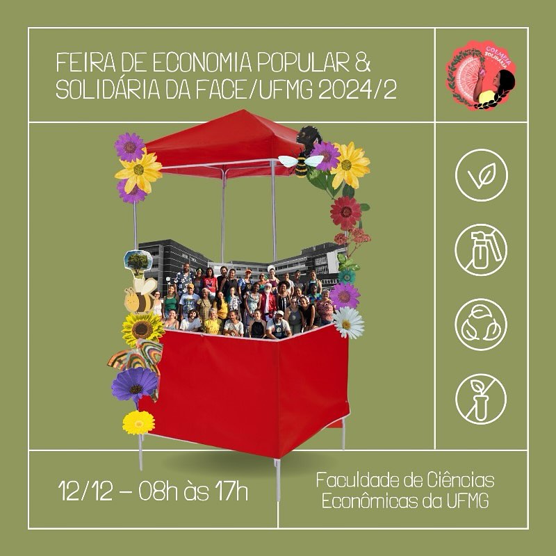 No dia 12 de dezembro, na Faculdade de Ciências Econômicas da UFMG, vai acontecer a Feira de Economia Popular e Solidária. Nela, será possível ter a oportunidade de conhecer produtos artesanais e confecções exclusivas, explorar os aromas e sabores dos produtos agroecológicos e fortalecer a rede de pequenos produtores. Com a entrada gratuita, é uma excelente chance de se conectar com a economia popular, apoiar iniciativas locais e ainda garantir aquele presente especial e cheio de significado para o Natal.
