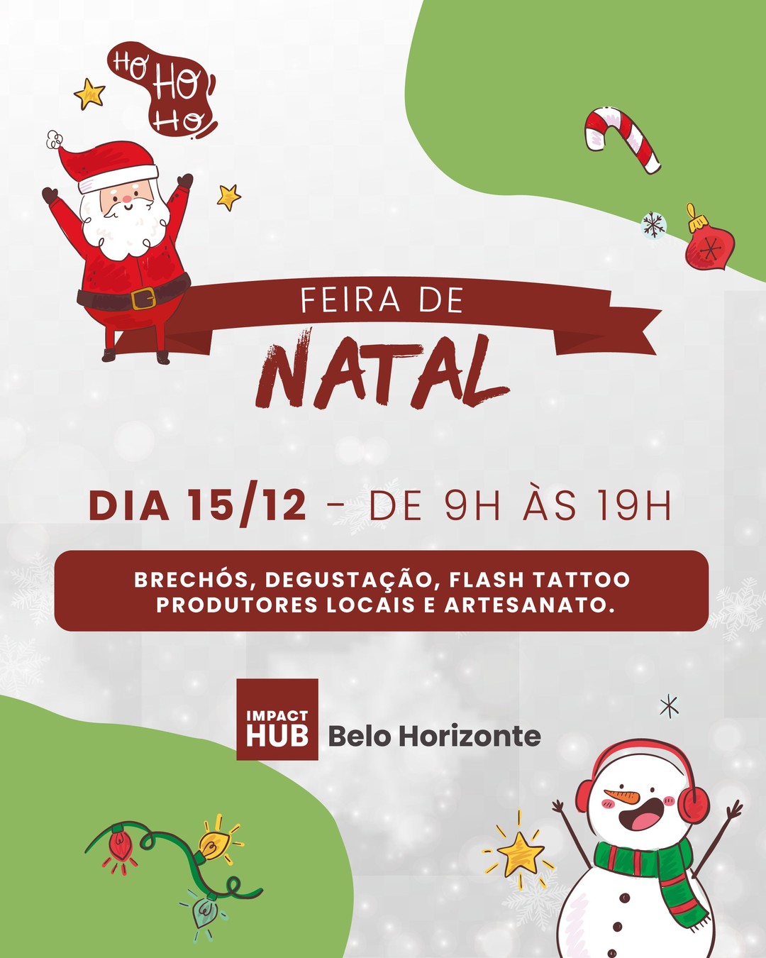 O Impact Hub BH receberá no dia 15 de Dezembro, pequenos empreendedores, iniciativas locais, brechós e bazares para a nossa Feira de Natal!