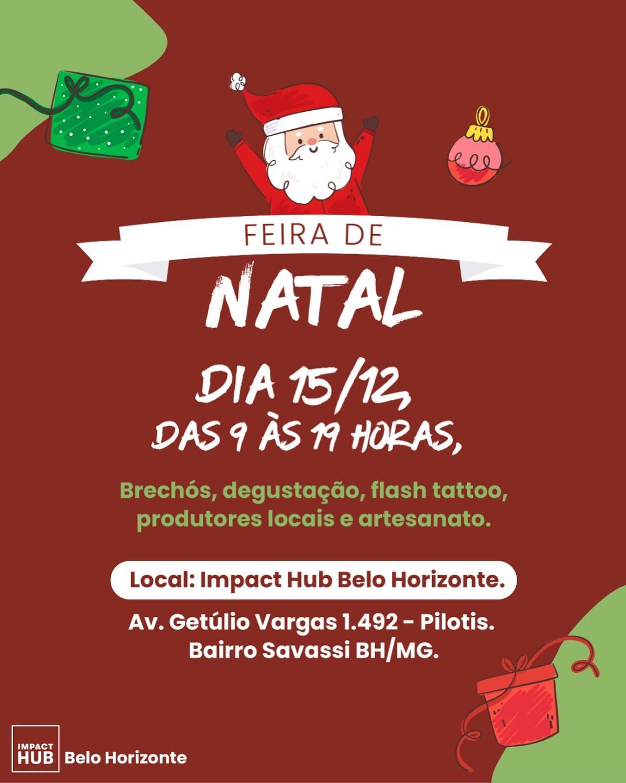 O Impact Hub BH receberá no dia 09 de Dezembro, pequenos empreendedores, iniciativas locais, brechós e bazares para a nossa Feira de Natal!