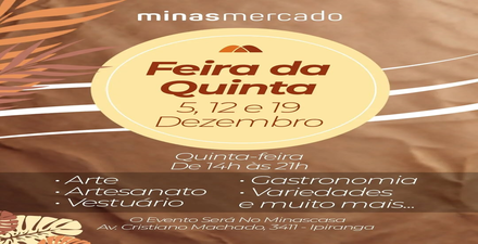 A partir desta quinta-feira, 05/12, BH contará com mais uma opção fabulosa de entretenimento, a Feira da Quinta. Um evento cheio de charme e experiências únicas!
