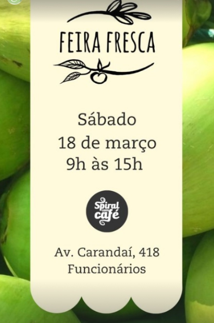 Sábado, dia 18/03, de 9h às 15h a Feira Fresca desembarca na Av. Carandaí, 418.