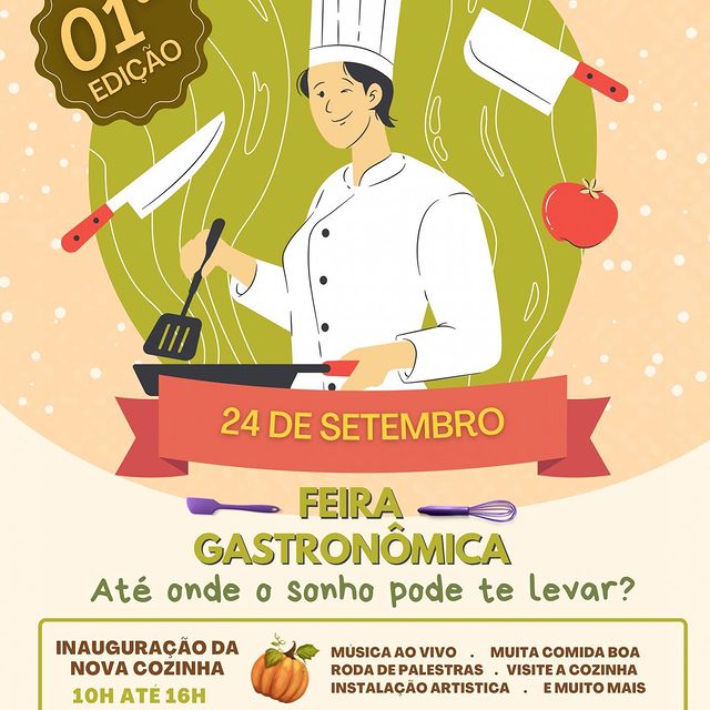 Iremos abrir nossa cozinha em uma deliciosa Feira Gastronômica, vão ser diversos pratos preparados pela Renata com participação dos nossos queridos alunos da Escola de Abraço, vocês vão poder ver de perto o quanto nosso curso estimulou essas pessoas a voltarem a sonhar, devolvendo confiança aos nossos alunos, além de ensinar a preparar coisas deliciosas na cozinha.