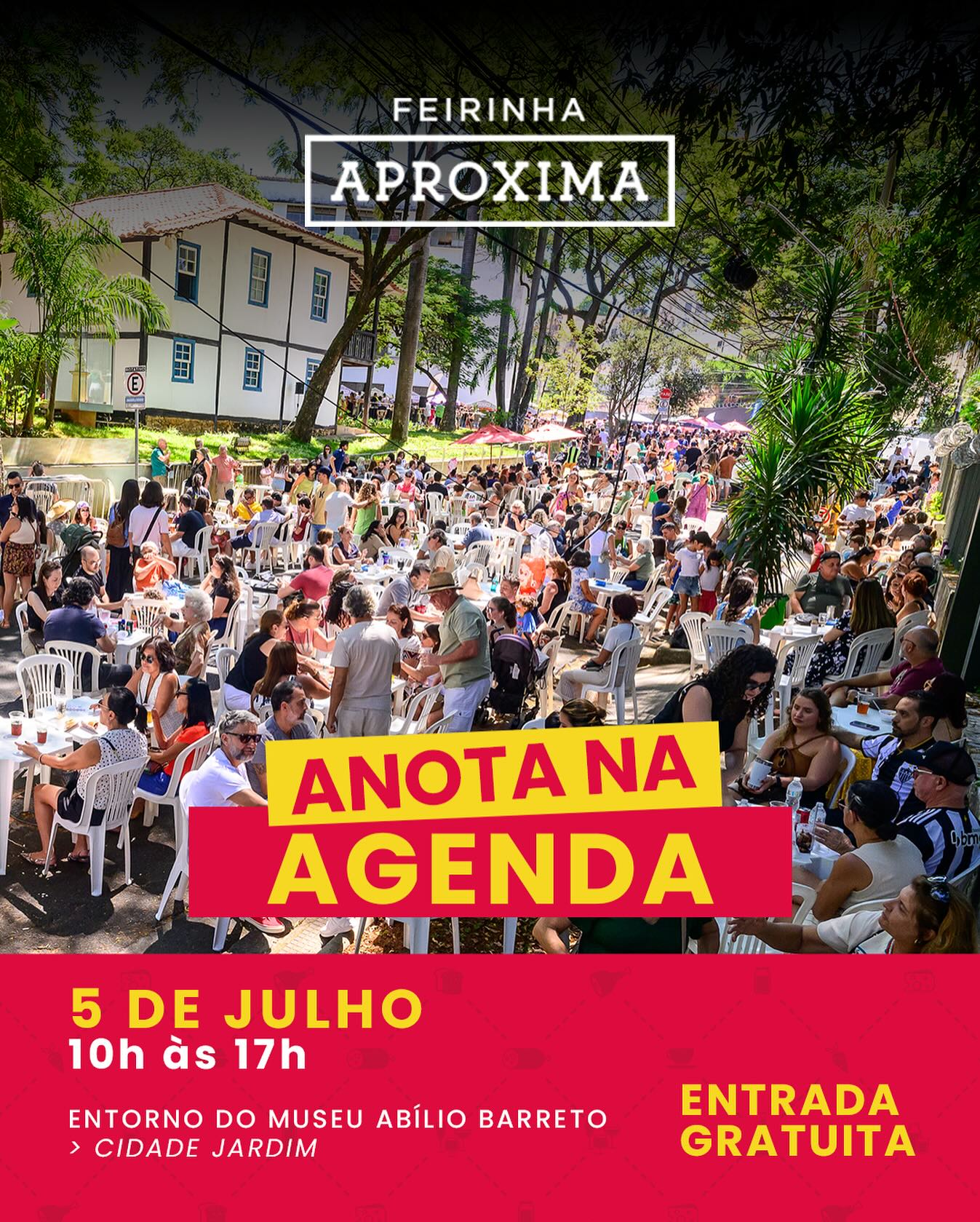 Consolidada como um dos principais eventos gastronômicos de Minas Gerais, a Feirinha Aproxima retorna neste sábado, 5 de julho, ao entorno do Museu Histórico Abílio Barreto, em Belo Horizonte. Das 10h às 17h, o espaço será tomado por uma programação que combina gastronomia, cultura e encontros com entrada gratuita e um cardápio pensado para agradar todos os gostos. Além da boa comida, o evento reúne música, vinhos, cervejas artesanais, atrações infantis e produtos de pequenos produtores, compondo uma vivência ao ar livre pensada para todas as idades.