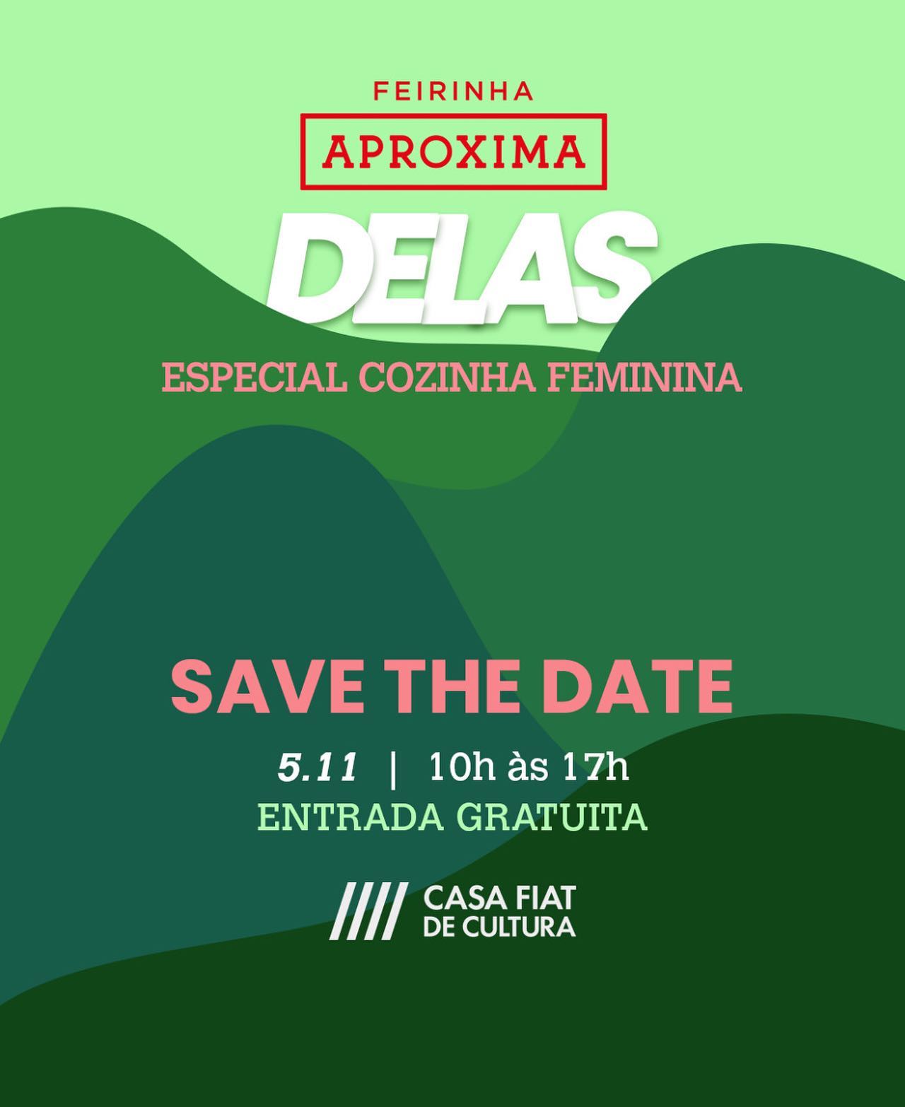 Dia 5/11 a gente volta à @casafiatdecultura pra fazer a Feirinha Aproxima Delas - Especial Cozinha Feminina.