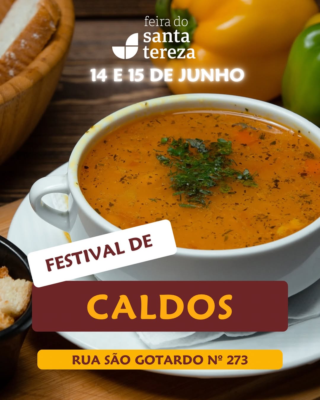 Nos dias 14 e 15 de junho, das 10h às 18h, acontece o Festival de Caldos no charmoso Mercado de Santa Tereza!