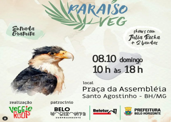 Vem aí uma edição super especial do Paraíso Veg, dia 08/10, na Praça da Assembleia com o patrocínio da Belotur e Prefeitura de Belo Horizonte!