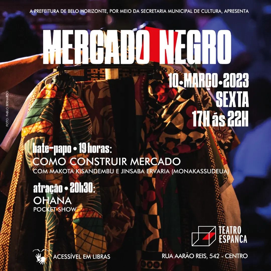 Assim como nos mercados do continente Africano, Mercado Negro é um espaço colaborativo, de força econômica, tradicional e ancestral de muitos itens e suas diversas cores, texturas, tecidos, materiais, acessórios, brinquedos, além de alimentos, ervanárias e temperos.