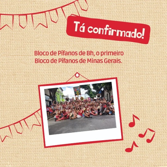 Abrilhantando os festejos haverá as apresentações dos: Bloco de Pífanos BH, Assum Preto, Thiago Amador. Além da presença da bateria e banda do Andacunfé tocando as mais lindas de mestre Gilberto Gil.