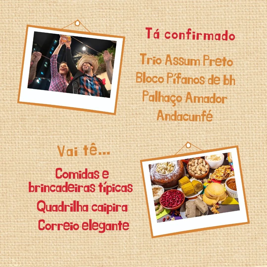 Haverá também comidas típicas, brincadeiras, quadrilha e muito mais!